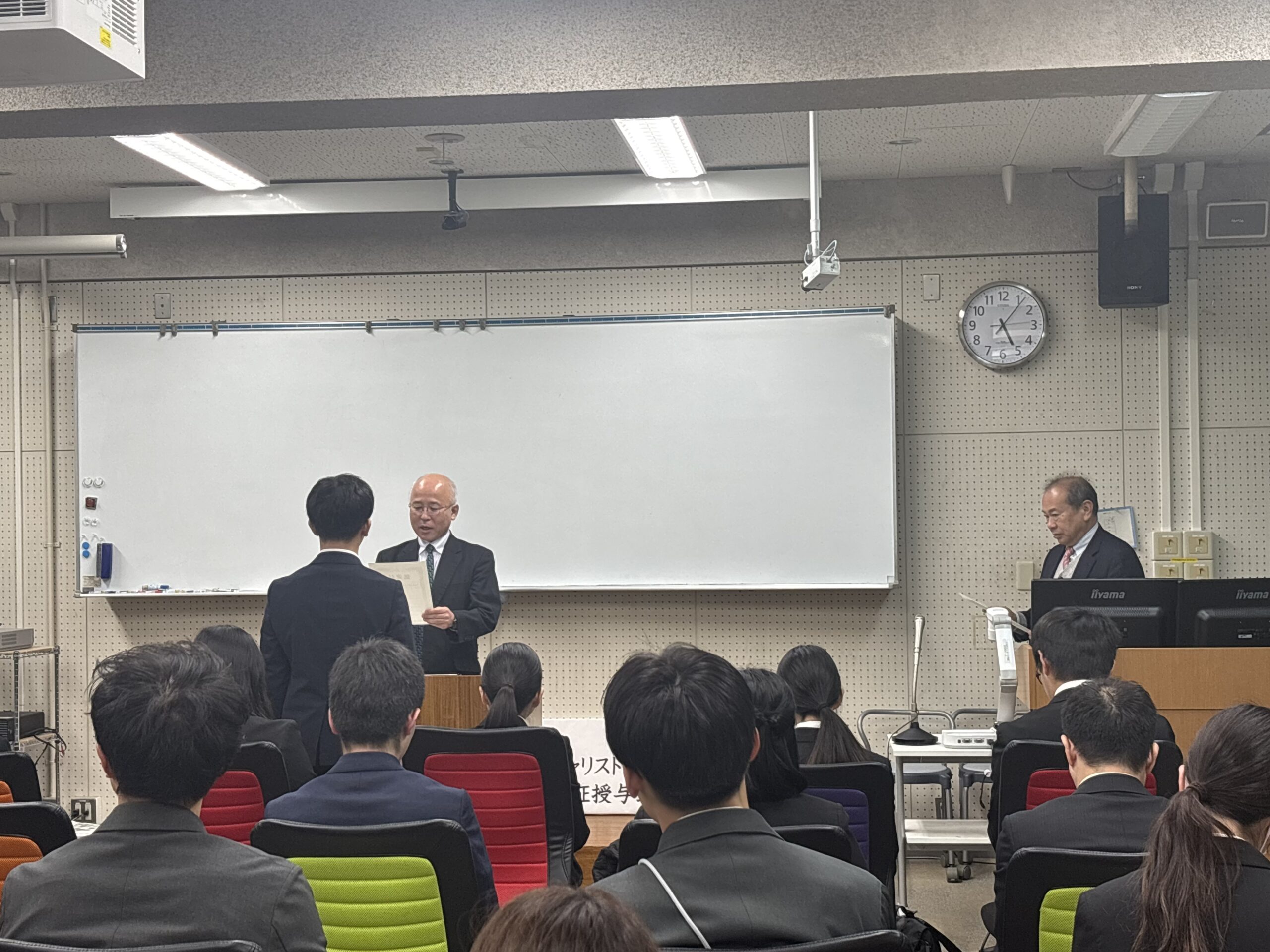 宮下俊也学長からは、「国立大学がこれから様々な特色を出していく必要がある中、本学の強みは、伝統文化に囲まれた奈良の地で学べる事と、ESD(持続可能な社会の創り手を育成するための教育)を学べる事の2点だと考えている。みなさんには、本学で学んだ事を誇りに、ESDとへき地教育に強い教員として活躍してほしい。」と想いを語りました。